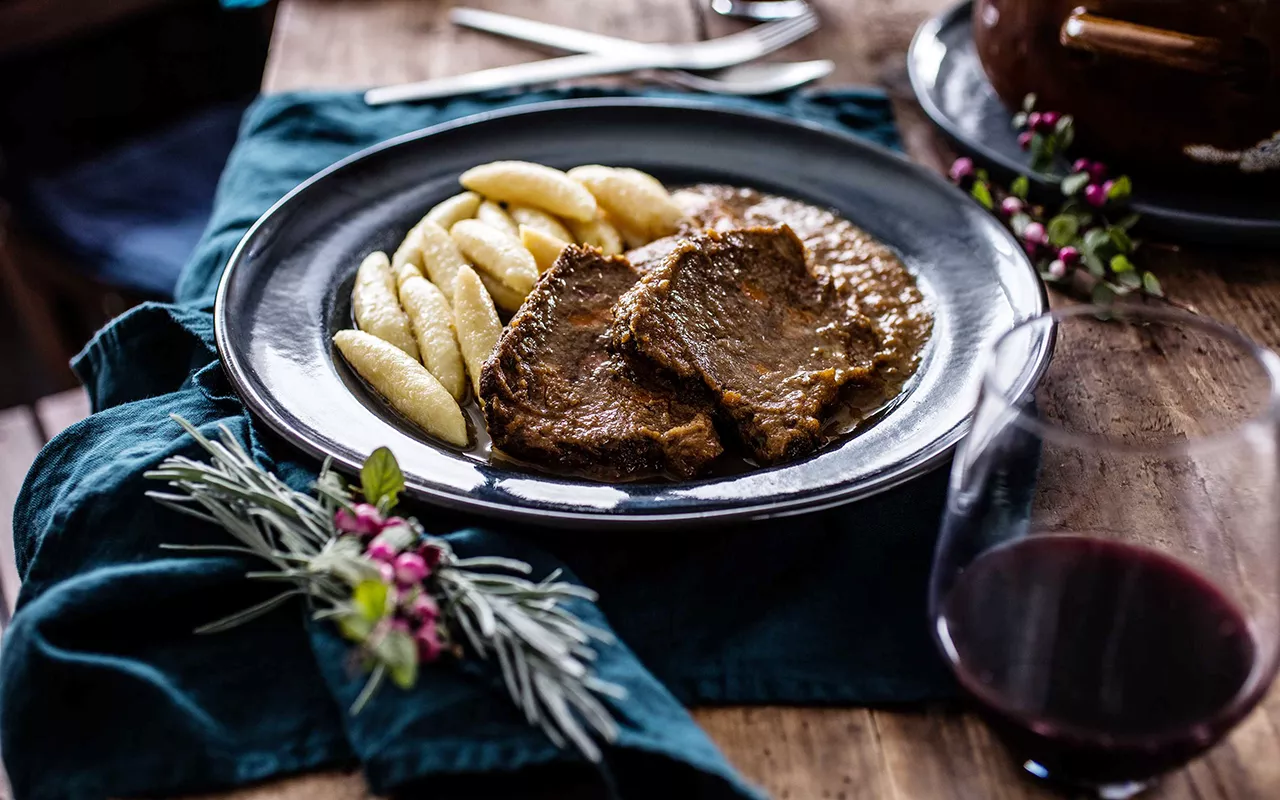 Tra i piatti leggendari c’è la Pašticada preparato in Dalmazia preferibile durante le celebrazioni come matrimoni e battesimi, una lunga preparazione di carne, solitamente coscia di manzo, che viene trafitta e farcita con aglio, chiodi di garofano, carote e pancetta e marinata per una notte in aceto di vino. Viene poi stufato per diverse ore con cipolle, prezzemolo, prugne, vino e prosecco dolce. La carne viene tagliata a fette più spesse e ulteriormente cotta nella salsa risultante fino a quando non diventa molto densa. La Pašticada viene solitamente servita con gnocchi o pasta fatta in casa. Ideali accoppiamenti con i vini rossi della zona oppure bianchi macerati e della costa con una corposità e acidità da reggere il corpo del piatto.