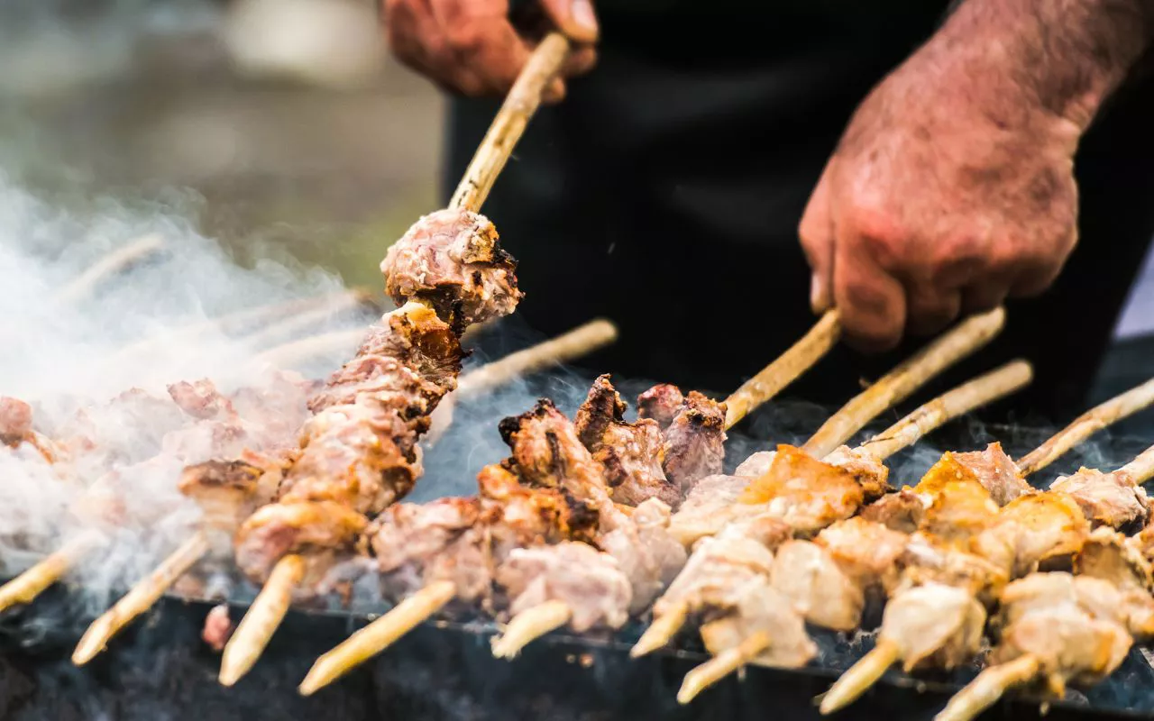 Oggi gli spiedini di carne prima di essere grigliati, vengono marinati nei modi più originali possibili, con cipolle bianche spezie come paprika dolce, oppure coriandolo, basilico, prezzemolo o aneto e a volte si usa il Kefir, oppure acqua frizzante, oppure birra o ancora limone, da fare marinare una notte intera nella crema che si crea per amalgamarsi con la carne. Una delizia del palato una volta grigliata, da assaporare con un corposo rosso di zona. L’aperitivo per eccellenza è il Khychin, una focaccia con vari ripieni, la regina della tavola nelle re-pubbliche della Cabardino Balcaria e Karachaj Circassia.