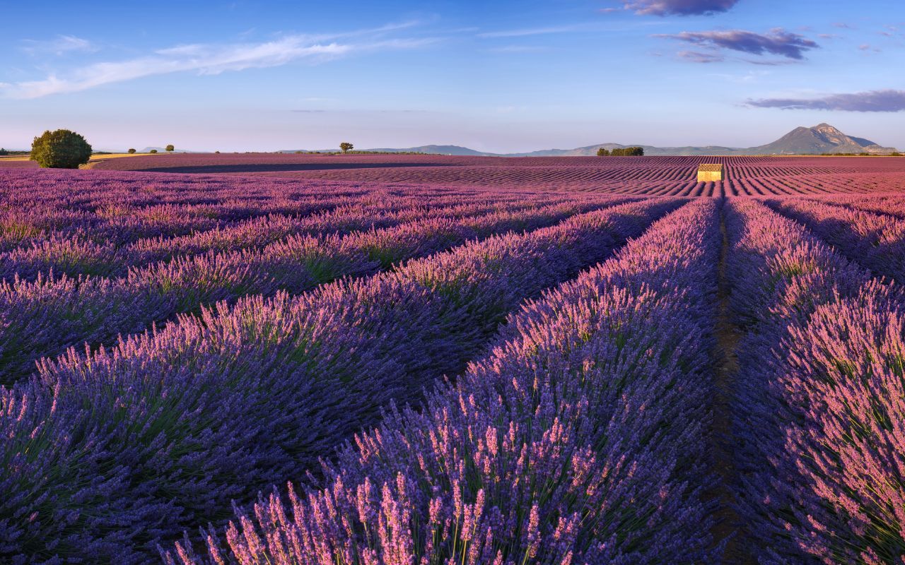 Distese di lavanda in piena fioritura che ricoprono un paesaggio che si tinge di blu e viola, una terra che si estende a sud-est della Francia tra Nizza e la Camargue caratterizzata da infiniti campi di lavanda e vigneti, con il vento secco che soffia da sud chiamato Mistral, che si incanala poi nel Rodano e raggiunge i pendii di vigneti della denominazione qui confinante: stiamo viaggiando e sorvolando la bella e soleggiata Provance.