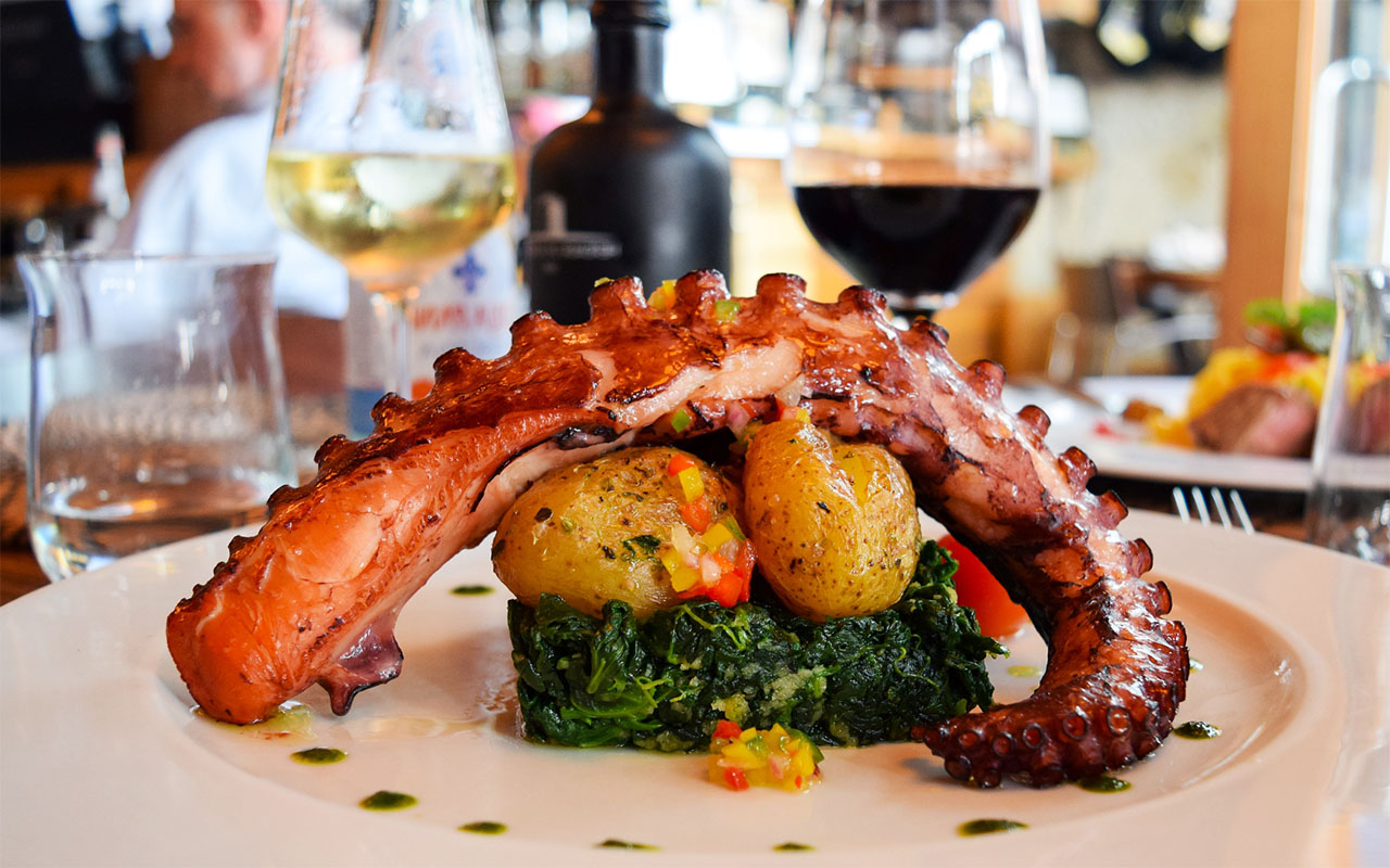 Il Maderia si accompagna facilmente ad aperitivi ma sempre ricchi di struttura per bilanciare la forza alcolica, il polpo alla madeirense oppure le esptadas, spiedini di pesce tipici dell’isola abbinati a vini robusti solitamente.